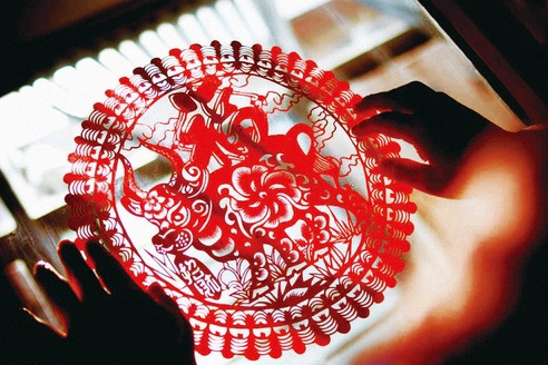 中国民间剪纸从色彩来划分,可以分为单色剪纸和彩色剪纸,单色剪纸中国人喜欢用红色,因为红色代表好运和吉祥。每逢过节或新婚喜庆,人们便将美丽鲜艳的剪纸贴在家中窗户、墙壁、门和灯笼上,节日的气氛也因此被烘托得更加热烈。