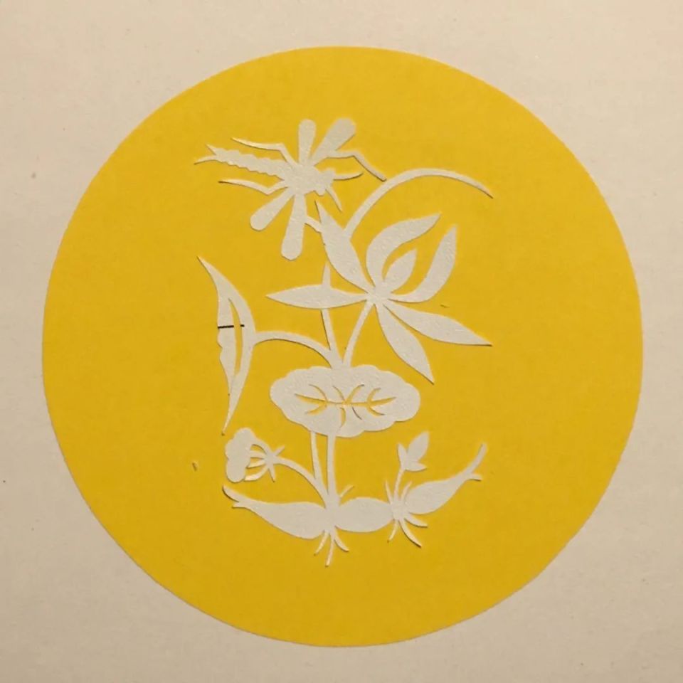 民间刻纸《夏至》中,刻一蝉趴在柳枝上,振翅欲鸣,那薄如轻纱的翅膀被刻画得栩栩如生,仿佛能听到它在夏日里奏响的乐章,一种浓郁的夏至氛围触目可见 。