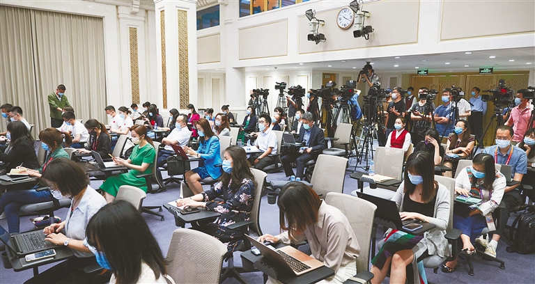 6月21日上午,国务院新闻办公室在北京举行新闻发布会,介绍《中华人民共和国海南自由贸易港法》有关情况。图为新闻发布会现场。海南日报特派记者 封烁 摄