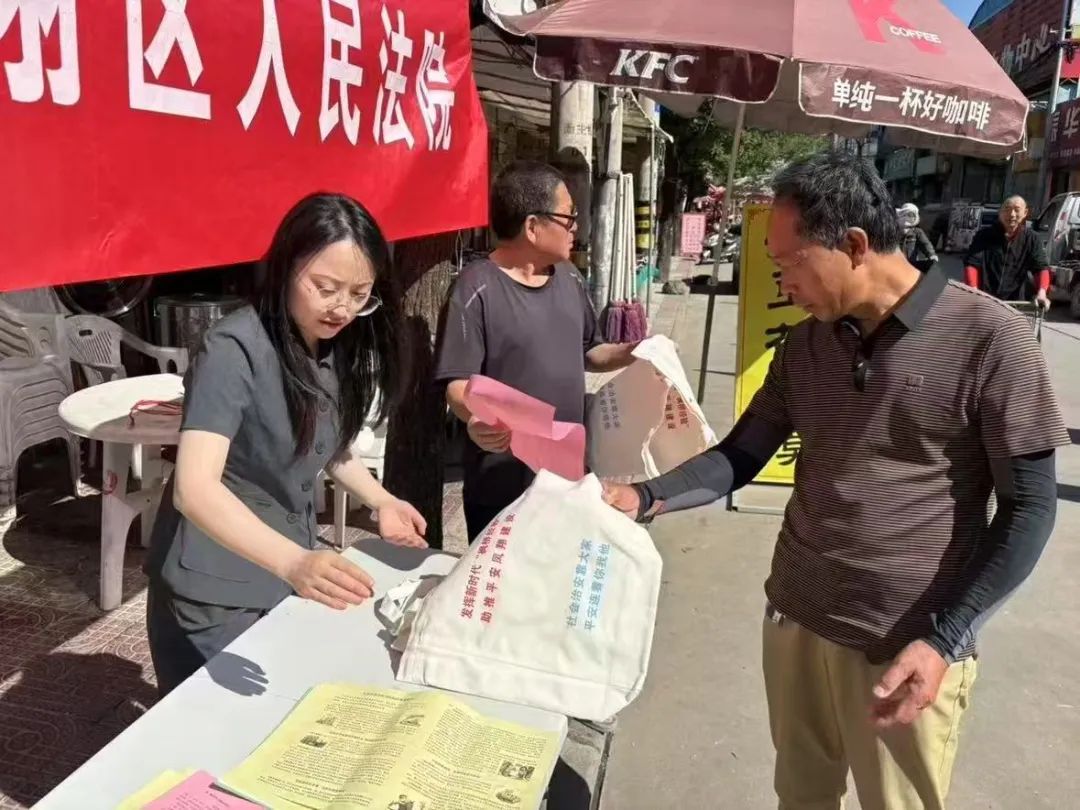凤翔法院通过悬挂横幅、发放宣传单、现场答疑、入店走访等形式,向群众普及环境保护法律法规,结合典型案例以案释法,引导群众树立“保护环境,人人有责”的法治观念。