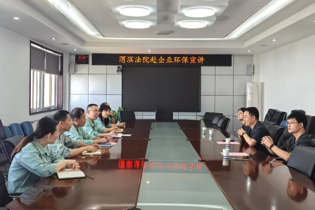 渭滨法院以审理的一件钛企业污染环境罪案件为切入点,赴辖区某企业开展以“守法经营、守护钛城、守望未来”为主题的环保普法宣传,并向企业发出环保行动倡议书。