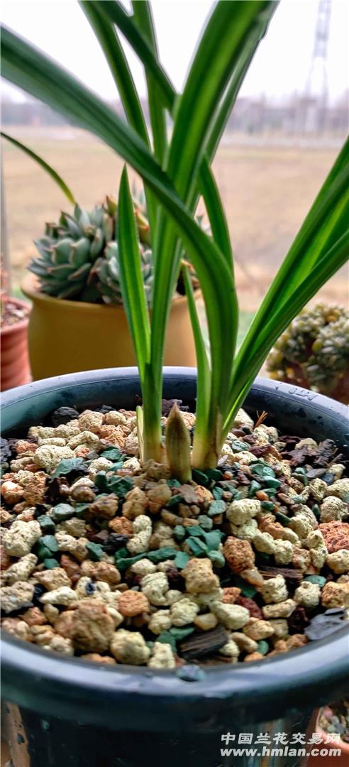 注册兰花交易网第一天,就有缘入手了一盆莲瓣兰荷之冠,两苗一芽带一花苞,期待了好几天,物流终于到货了,急急忙忙去取了快递,回到家就着急的拆快递箱子,满心期待,新手入兰坑,也不是很懂苗情如何,如何评判,但是凭自己的眼观判断,苗子还是很强壮的,叶子清秀,根系也很发达,迫不及待的泡了多菌灵的药水,泡了十几分钟,然后拿出来晾根控干水分,拿出事先准备好的兰花盆,自己配的植料,三下五除二上盆完成,盆面铺上一些小石子,定根水狠狠地浇了个透,叶子上面的浮灰也冲的干干净净,看起来清晰脱俗,漂亮的很,接下来就慢慢养护了,苗子发来的时候还带一个花苞,静待春节期间开放了,到时候泡壶茶,放着音乐,赏花闻香,岂不美哉妙哉!!!