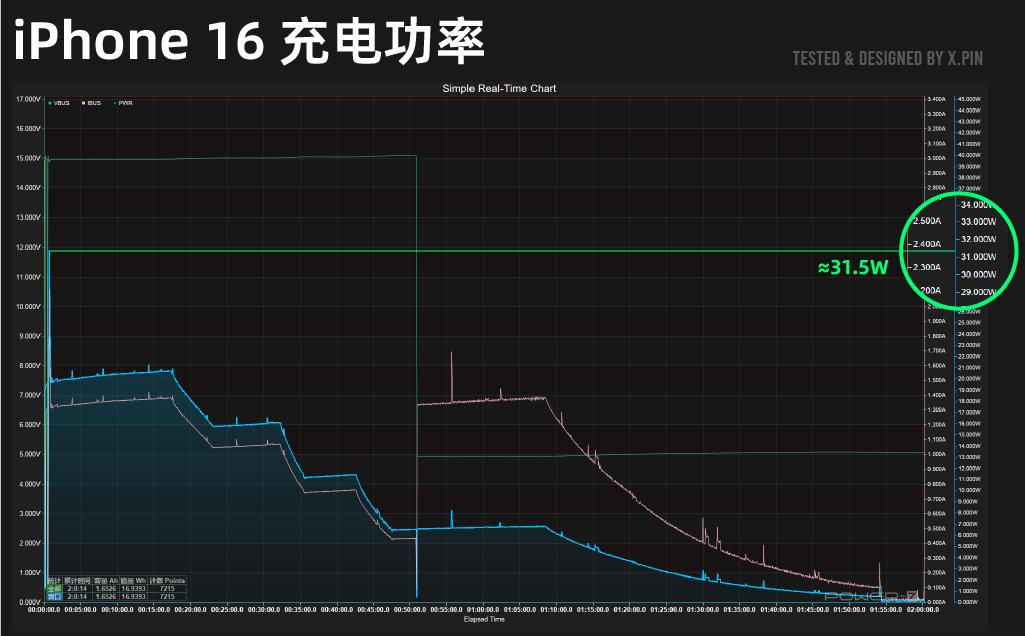 结果就如你们所见,无论是标准版还是 Pro ,都只有一个瞬间( 2 到 3 秒? )冲到 30W 以上的峰值功率,由此可见:果果没说的东西就是没有。