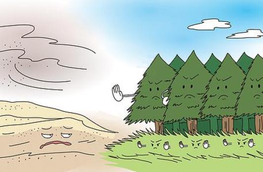 树木能够阻挡、过滤和吸附空气的灰尘,那些叶子表面带有刺毛、茸毛和叶面粗糙的植物以及叶面分泌油脂和粘液的绿色植物,滞留和吸附大气中灰尘和粉尘的作用就更大。据测定,1公顷以树木为主的绿地,每年可吸附或阻挡沙尘12吨。