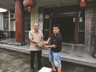 救助凹甲陆龟。 通讯员 叶敏 摄