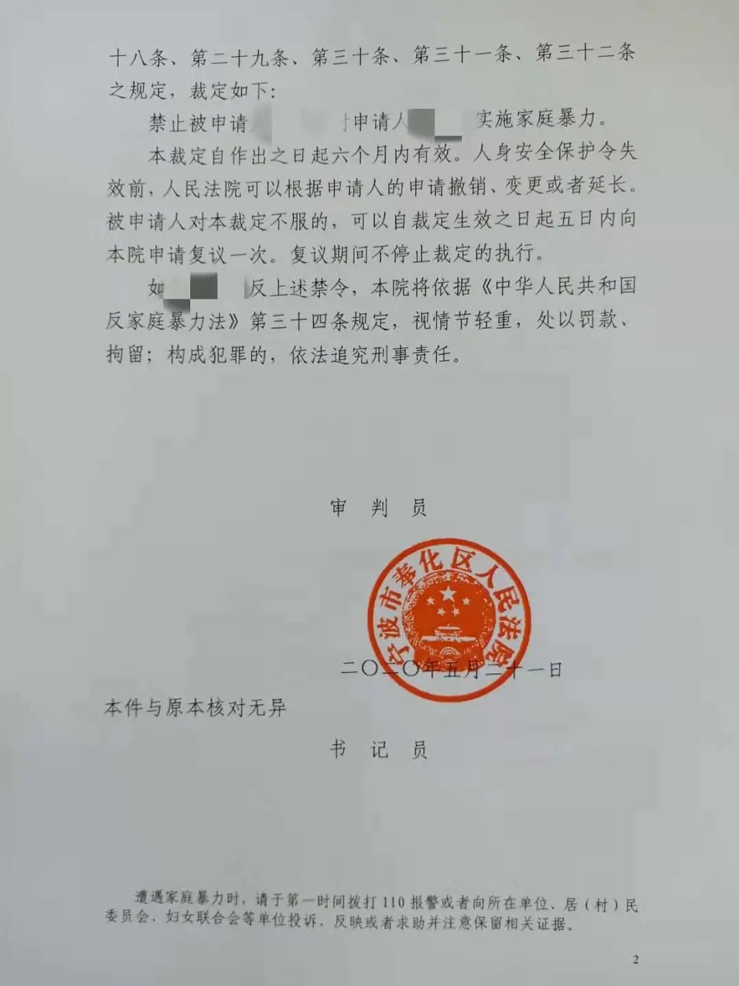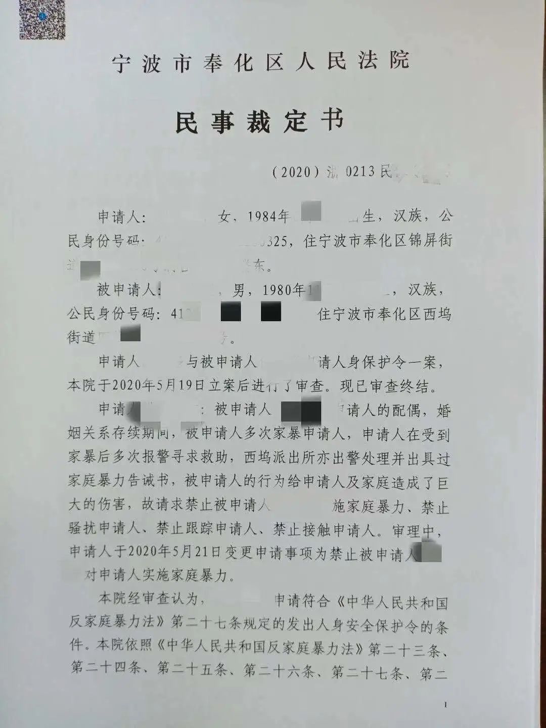 然而之后的小戴仍多次到小佟的工作单位及住所骚扰、恐吓小佟,小佟无奈向奉化法院申请人格权保护禁令。