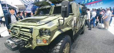 4月25日,拥有自主知识产权的军用版东风猛士亮相北京车展。龙 巍 摄(人民视觉)