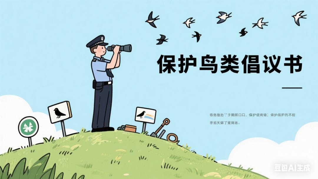 朋友们,每一只飞翔的鸟儿都是生态和谐的象征,每一片绿色的家园都承载着生命的希望。让我们携手共进,以坚定的决心和切实的行动,向非法猎捕、贩卖野生鸟类及破坏栖息地的行为说“不”,共同守护这份属于大自然的珍贵礼物,为建设人与自然和谐共生的美丽家园贡献力量!