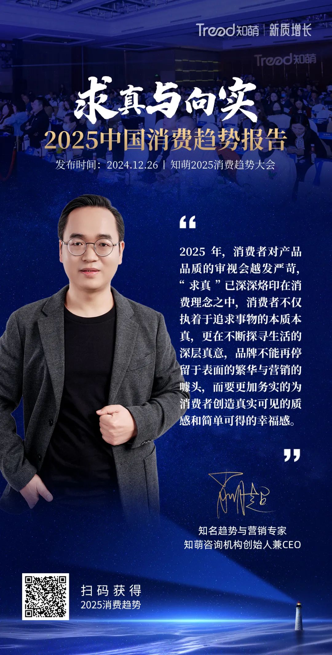 会上,知萌趋势专家团正式发布《2025中国消费趋势报告》、知名趋势与营销专家、知萌咨询机构创始人兼CEO、趋势大会发起人肖明超,对知萌《2025中国消费趋势报告》展开解读。