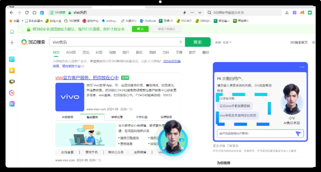 今年,国内主流大模型从卷参数转向卷智能体平台,诞生如360智能体、文心智能体、豆包智能体、元器智能体等平台,智能体作为AI技术变革的先锋,正在许多领域中展现出巨大的潜力。例如智能手机市场,vivo携手360智慧商业,共同打造了全网首例全场景AI售后智能体小V。以全天候的实时响应、千人千面的智能接待,小V在满足用户多元化的服务诉求的同时极大提升了用户在售后环节的服务体验及品牌好感度,助力品牌突破产品换新及复购瓶颈。通过构建覆盖品牌从新品预热、发布、到售后服务全生命周期的营销增长闭环,360智慧商业为行业树立了新标杆,这一突破性探索也将引领更多企业对AI技术进行积极探索和应用。