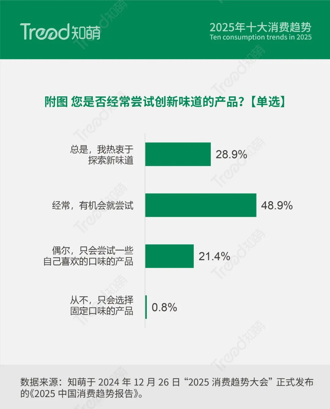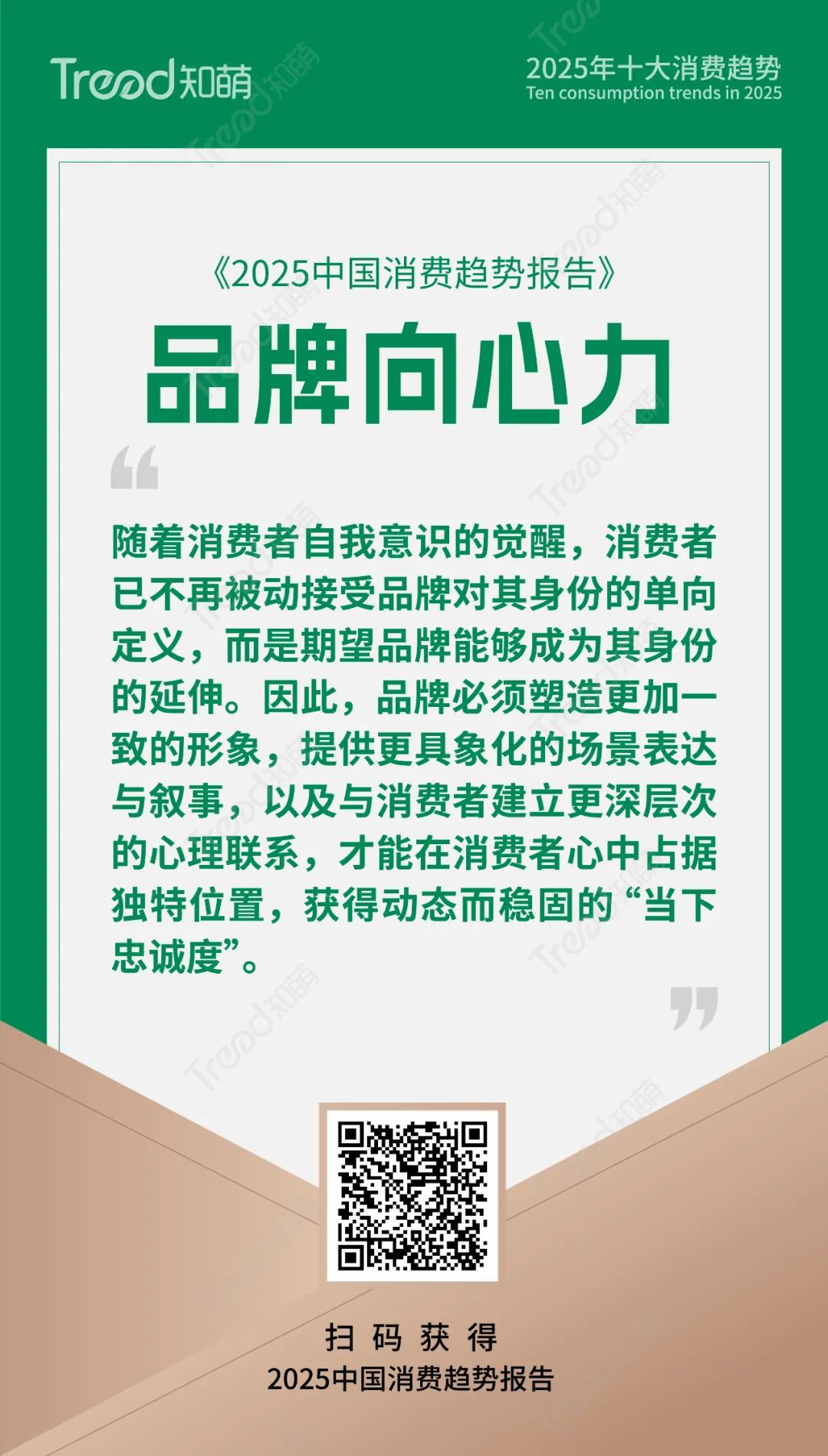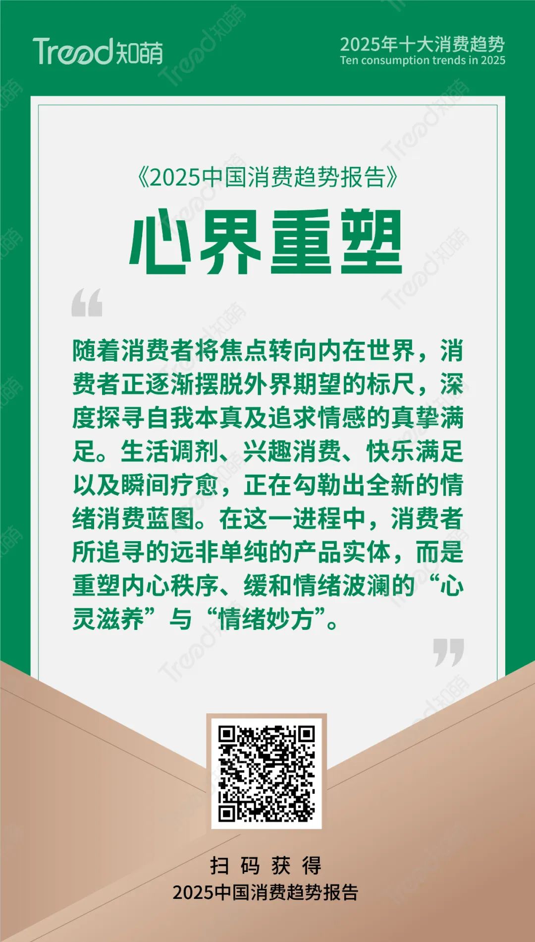 除掉以上我们为大家提供的精要的10大趋势内容,知萌《2025中国消费趋势报告》还包括了消费社会学家对于2025消费趋势的精彩观点,我们对于2024年消费市场的总结盘点,同时,结合2025年的10大消费趋势,我们的报告还详细解读了超过15个行业48个趋势引领品牌的趋势实践案例,还有很多来自第一现场的鲜活的消费者的精彩故事和语录,上百个丰富的趋势数据图表。我们期待这份2025年的消费趋势报告,能清晰映照2025中国消费市场的深刻演变与内在逻辑,为企业开启2025 年消费趋势的新征程。