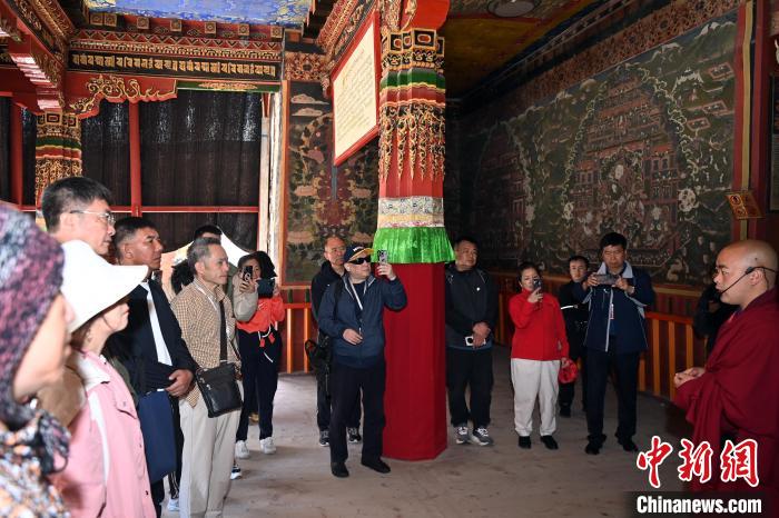 8日,2025海外华文媒体甘南行活动启动,来自法国、加拿大、日本等12个国家和地区的18家海外华文媒体代表参加。当日,采访团一行走进这座有三百余年历史的藏传佛教名刹,实地探访其在旅游热潮中如何保护文物。