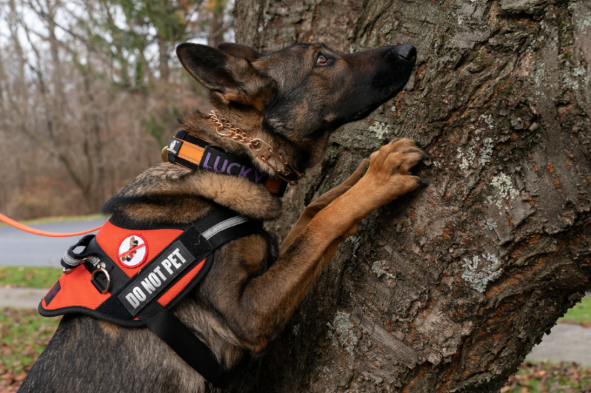 目前一只名为Lucky的一岁半德牧已经正式上岗,它的每日工作就是和Shane一起,在宾州首府哈里斯堡寻找斑衣蜡蝉卵块的踪迹。Lucky的工作重点是巡逻重度受灾区的边缘范围,来确保该地的斑衣蜡蝉不会继续扩散到其他地区。