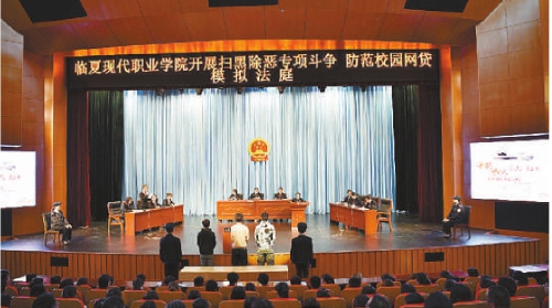 5月15日,临夏州检察院以查办的套路贷案件为例,和临夏州现代学院共同举办“校园套路贷恶势力”案件模拟法庭,引导学生远离套路贷。