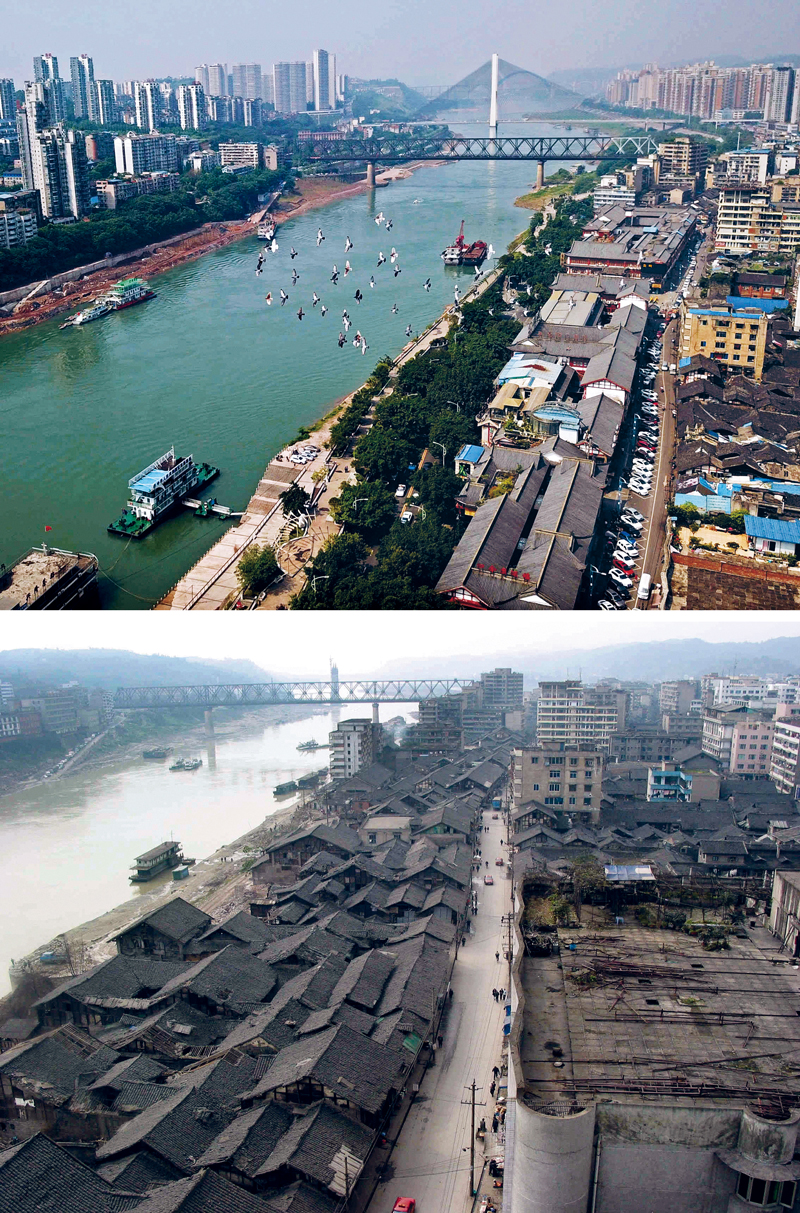 四川省宜宾市有“万里长江第一城”之称,金沙江、岷江在这里汇合,在长江生态环境保护方面具有特殊的地位。上下图分别为2018年5月、2012年1月在同一视角拍摄的金沙江两岸。 新华社发 曾朗/摄