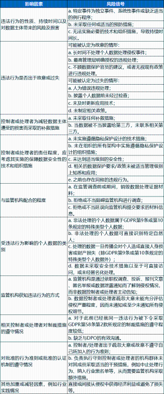 GDPR第83条第(2)款列出了在具体个案中,确定是否处以行政罚款及具体的罚款数额时应当考虑的因素。同时欧盟法规进一步解释了如何在具体个案中应用以下因素: