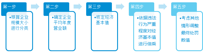该指南提出了提出了“五步法”来确定企业罚款数额: