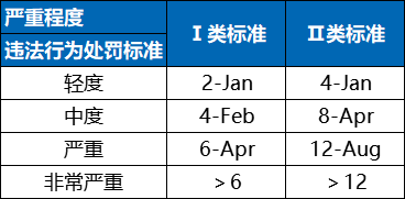 根据GDPR第83条第2款规定,违法行为的严重程度分为四类:轻度、中度、严重和非常严重。根据以上因素评判违法行为的严重程度,得出下列违法行为风险系数区间。在个案中,监管部门拥有自由裁量权,可根据个案的具体情况确定违法行为风险系数。