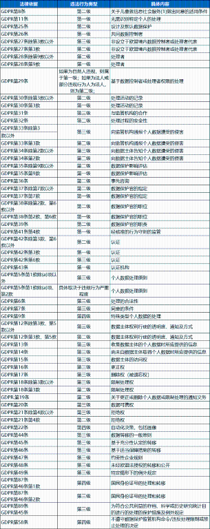 GDPR对控制者和处理者承担的义务根据其性质进行了分类,并规定了两种不同类型的处罚标准,对于某些违法行为的处罚程度会更严重。对违法行为性质的分类思路,可用于企业数据保护合规风险评估及高危业务场景的治理思路中,区分企业合规义务的风险等级,优先重点治理高危风险。