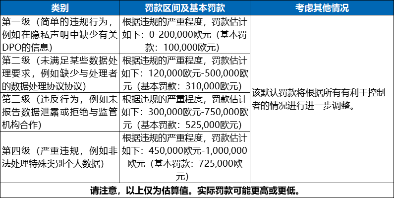 第一级:一般违规,例如隐私声明中缺少有关DPO的信息等;