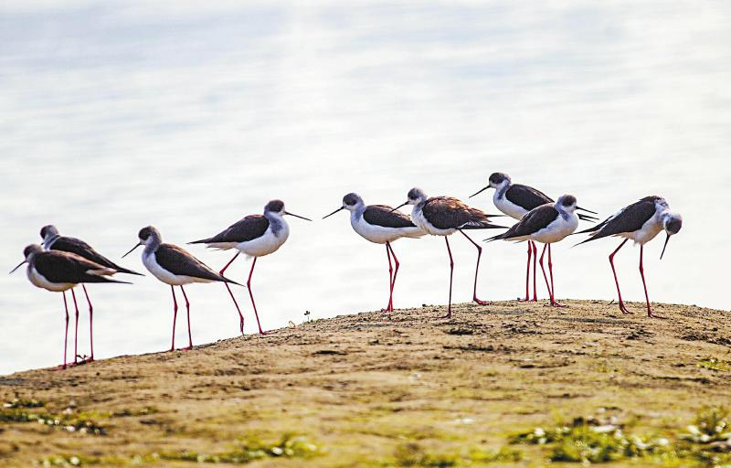 在成都市双流区华阳拍摄的黑翅长脚鹬。田明章 摄(C视觉)