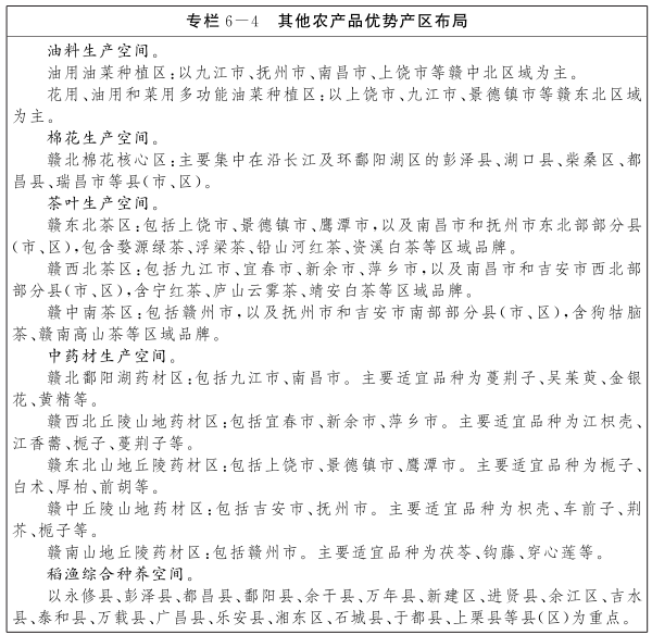 “五廊联动”——依托赣江、抚河、信江、饶河、修河等五大水系绿色廊道,聚合沿河沿岸优质耕地及传统村落,加强农耕文化与少数民族文化、手工技艺、民俗活动等传统文化融合,积极拓展农业功能,形成各具特色、互相联动的现代农业发展廊道。