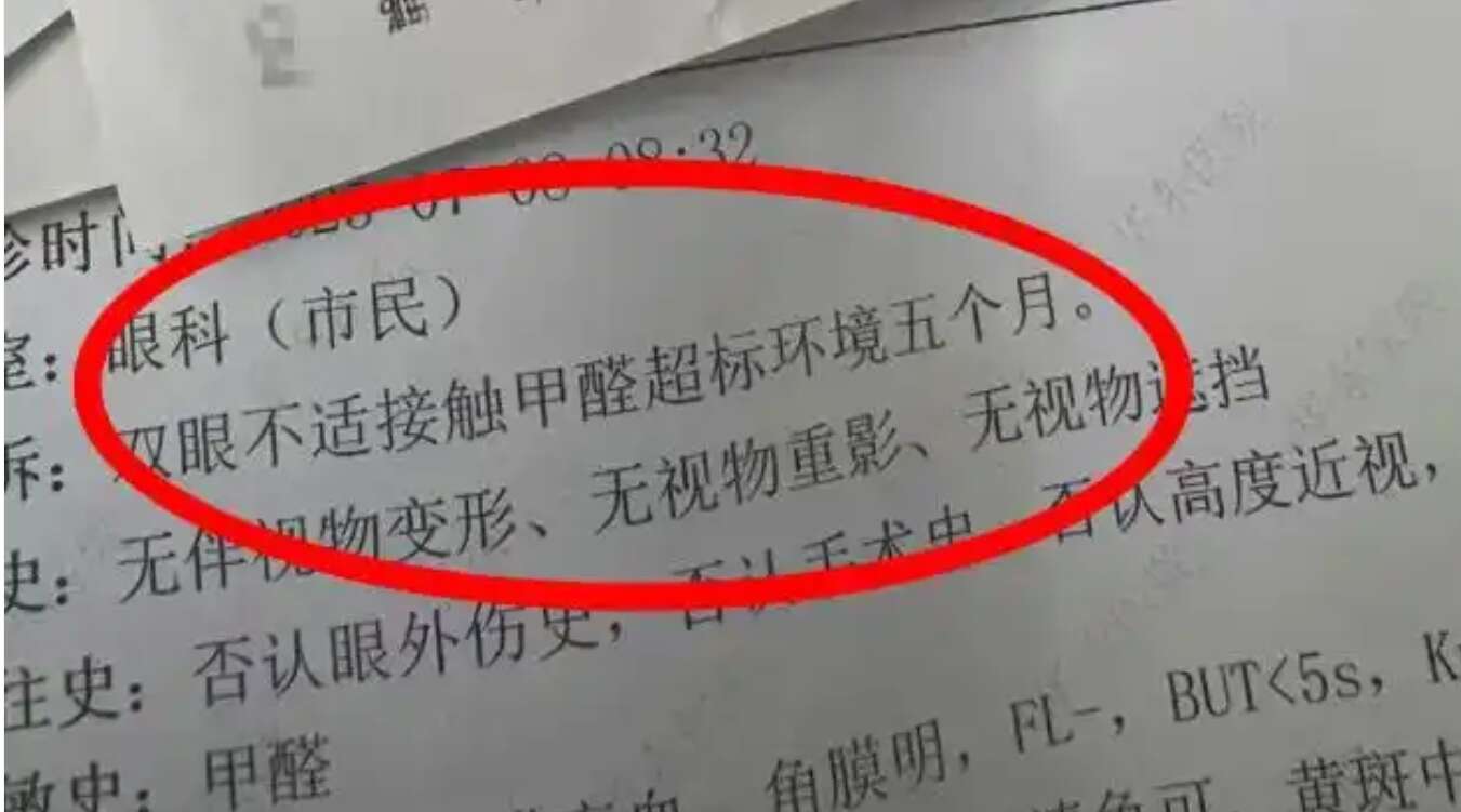 今年5月初,天气转暖后,他突然疯狂咳嗽,出现嗓子疼、结膜炎和过敏的问题,在医生朋友提醒下,他意识到这可能是甲醛超标引发的身体问题。