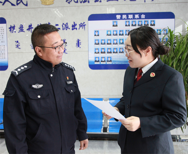 内蒙古自治区鄂托克旗检察院未检检察官到被附条件不起诉未成年人所属派出所调查情况。 本报记者于莹莹 通讯员哈布热 任杰摄