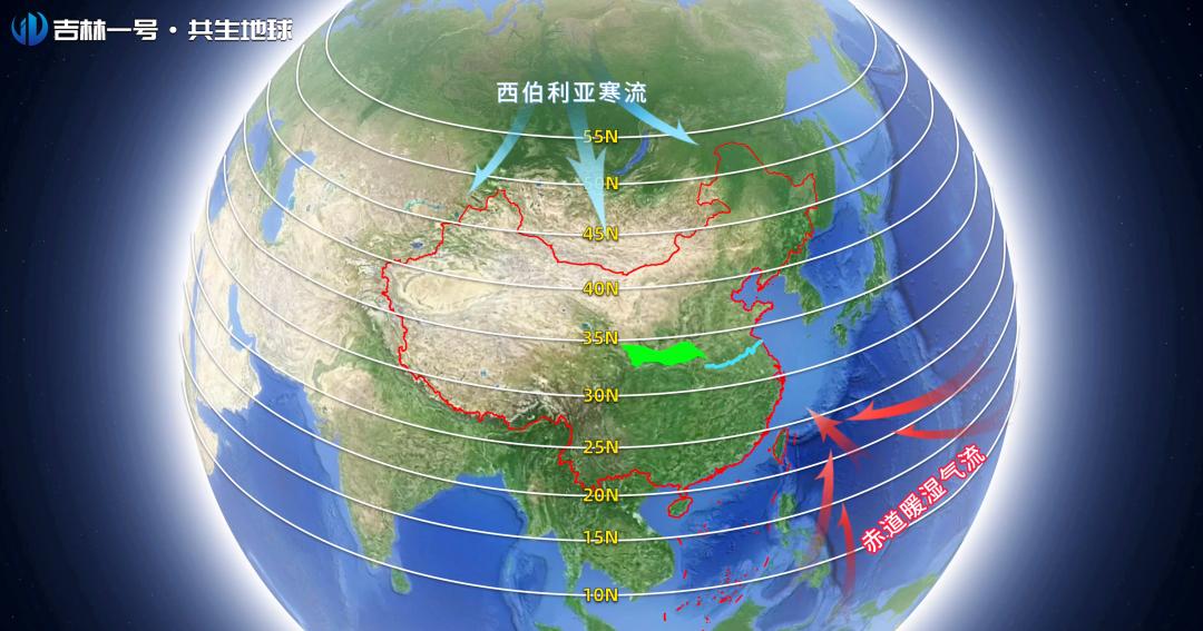 南北温度通常受纬度影响较大,中国大陆主体区域基本处于北纬19度到53度之间,秦岭淮河大致位于中国南北中轴线的北纬33度左右,基本是冷暖气流的中间位置。而且秦岭-淮河一线的位置也基本落在了气候带分布、温度带分布和干湿度带分布的临界线上。
