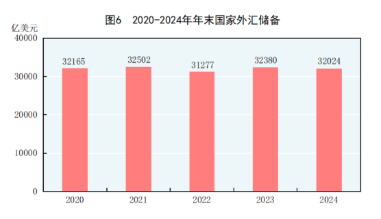 年末国家外汇储备32024亿美元,比上年末减少356亿美元。全年人民币平均汇率为1美元兑7.1217元人民币,比上年贬值1.1%。
