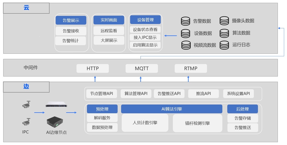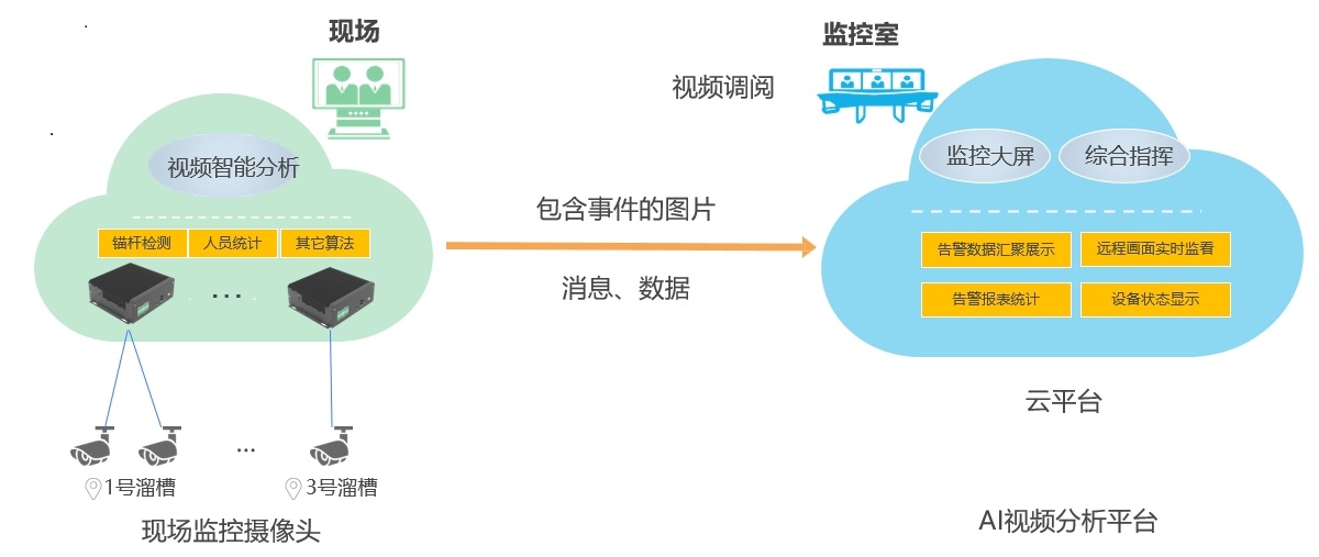 考虑到矿井下复杂的环境,加上多条生产线分属不同矿区相隔很远,为方便多套设备统一管理,决定使用智驱力晓知精灵ks968-m1边缘设备结合晓知精灵上位机的“云管边端”部署模式。