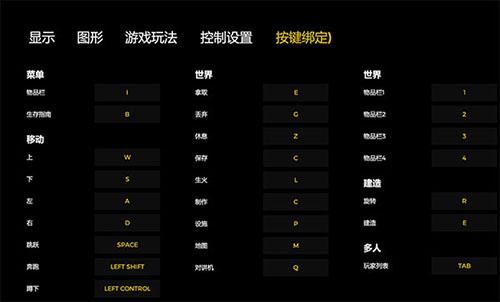 森林the forest游戏界面及基本操作介绍目前版本游戏不支持自定义快捷键。