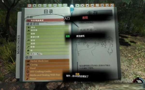 玩家可以通过点击生存指南的建筑项目进入分目录。