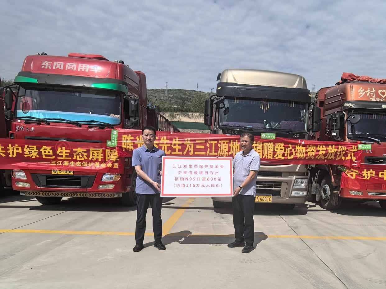 7月28日上午,三江源生态保护基金会在青海省红十字会物资储备中心举行民生物资发放仪式,向果洛藏族自治州各县赠送由社会爱心人士陈光标先生捐赠的医用口罩,助力基层民生保障。