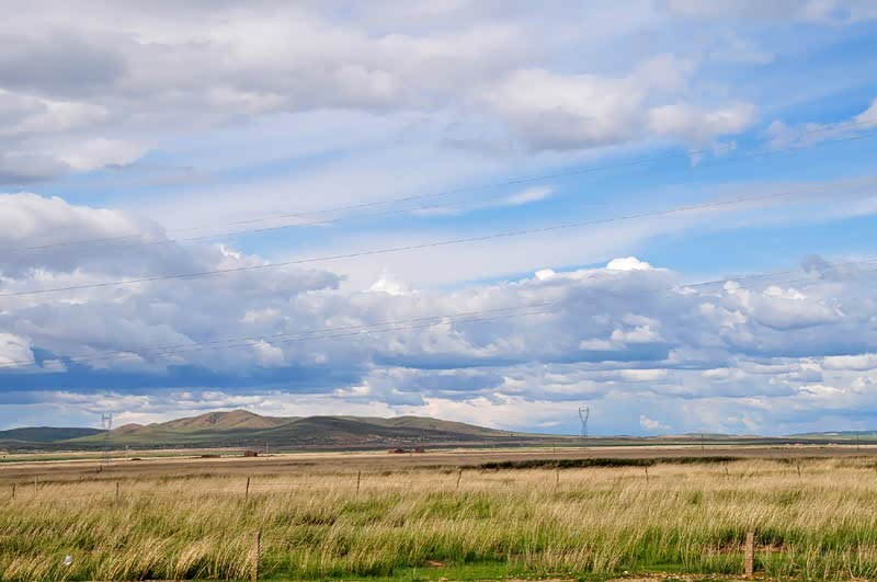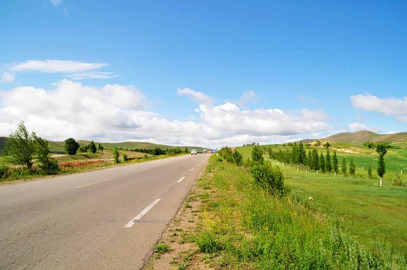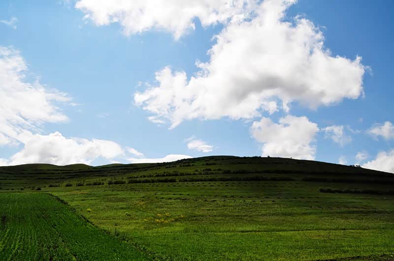 下午13:00到桑根达来,镇上挑了一家看着还算干净的家常菜馆吃午饭,207国道穿过桑根达来,所以不用额外的在镇上绕路。13:30继续上路仍在207国道上行驶,除了经过沿途村镇之外一路车流量很少,国道上间断有修路路段,但大部分路段路面平整,路况良好,路基本上都是新修的,过了桑根达来207国道标准基本和高速差不多,路况太好了,一条大路通向天际,车不多,好像也不限速,你想不快点开都不行,让老婆开了一个小时,平时在北京五环上开100都怕怕的人,在这里一不小心就彪到120-130。沿途景色很美,没有什么特殊的景点需要推荐,因为一路都是景点都很美,蓝天、绿地,白云一朵朵的浮在天地之间,牛、羊、马散落在远处的草原上,就像绿色的夜空中星星点点闪烁的星星,随便一框就是一幅美丽的图片。