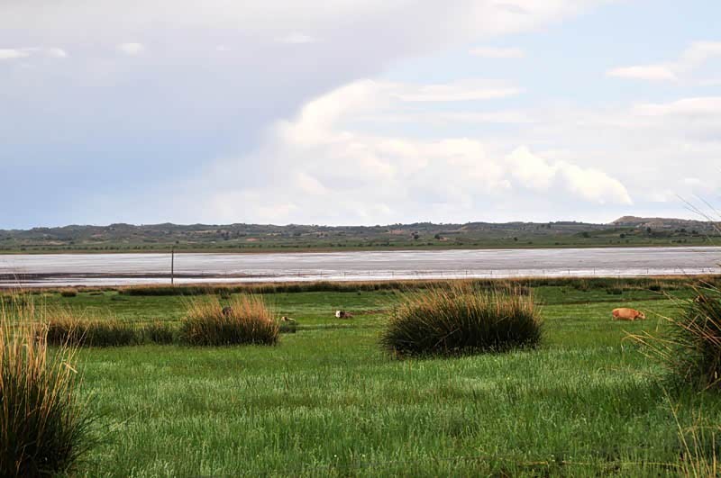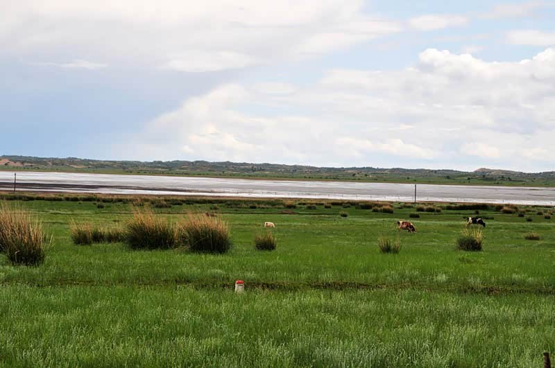 过了锡林九曲前面到达灰腾梁收费站。过了灰腾梁收费站不远,路边的路牌指示右转是达里湖,我们决定右转去看看达里湖,这是条小路,笔直通向天际,我们走了20多公里,前面的路变成了土路,我们不是越野车,看来不能前行了,南面已经看到了大片的水面,停下来欣赏一下风景,夕阳西下,在云彩中放射出万丈光芒,西边的天空渐渐放晴,东半边的天空还在乌云的笼罩下,南边是广阔的湖水,北面是绿悠悠的草原,东西向的小路两头都望不到边际,太美了。