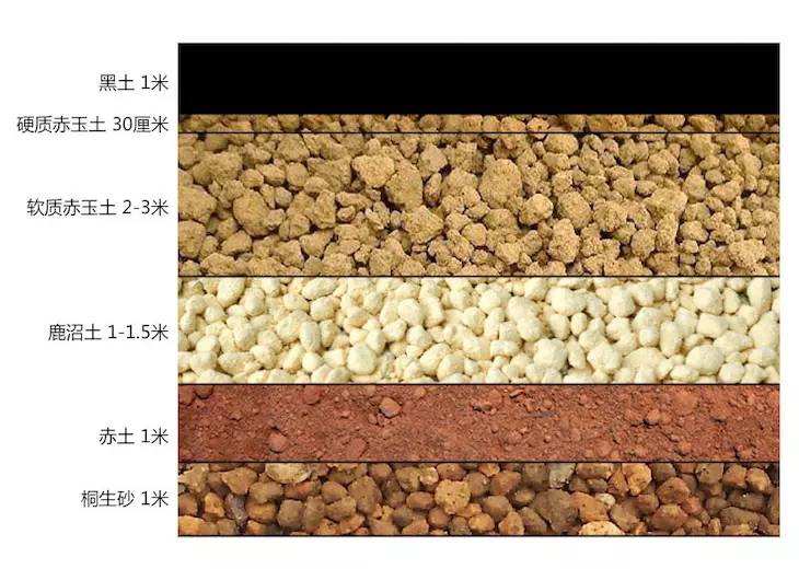 上图中黑的的部分就是黑土。下面土黄色的部分就是赤玉土啦。