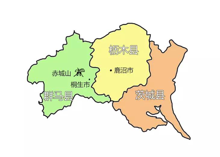 日本的地名与中国的不同,县是比市要大一级的行政区。我们经常提到的这些土,都来自于地图上这三个县:*马县、枥木县和茨城县。