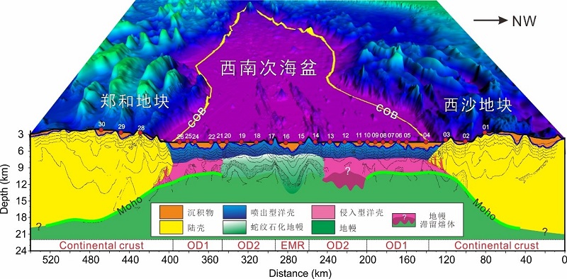 近日,中国科学院南海海洋研究所边缘海与大洋地质实验室(OMG)赵明辉研究员团队联合广州海洋地质调查局、德国GEOMAR亥姆霍兹基尔海洋研究中心等国内外单位,在南海西南次海盆深部结构研究中取得突破性进展。相关成果发表在国际地学期刊Journal of Geophysical Research: Solid Earth《地球物理研究杂志-固体地球》上,南海海洋所副研究员张佳政为论文第一作者,德国GEOMAR亥姆霍兹基尔海洋研究中心博士后黎雨晗、广州海洋地质调查局教授级高工姚永坚为共同通讯作者。