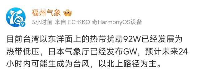 目前台湾东侧的低压(原扰动92W),未来24小时可能发展为12号台风“玲玲”,日本气象厅已经给出了预生成提示。未来这个台风将北上,可能登陆日本或韩国,不来我国。
