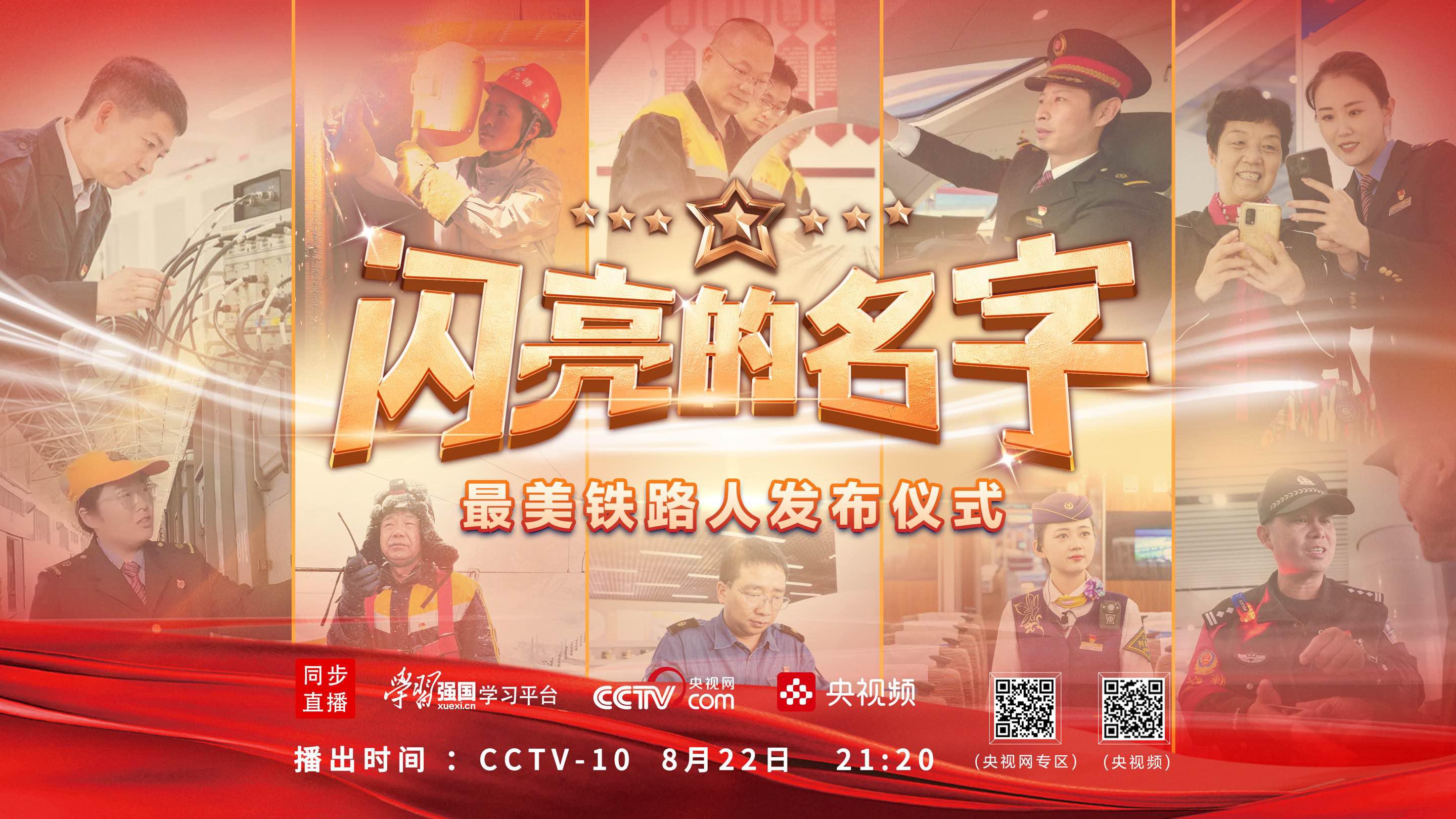 《闪亮的名字-最美铁路人发布仪式》将在中央广播电视总台央视科教频道(CCTV-10)8月22日21:20播出。首播期间央视频、学习强国、央视网等新媒体平台同步直播。