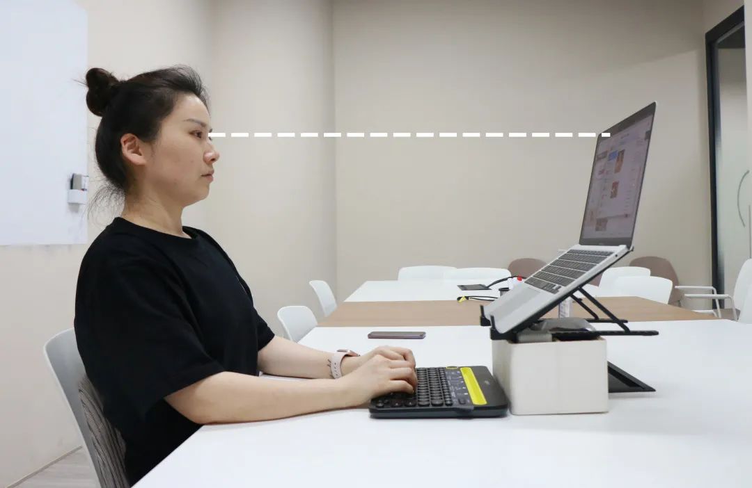 最后,别忘了你的脖子!调整你面前的屏幕和你的坐姿位一臂距离,并且你的视线平行位置应该落到屏幕的最上方。
