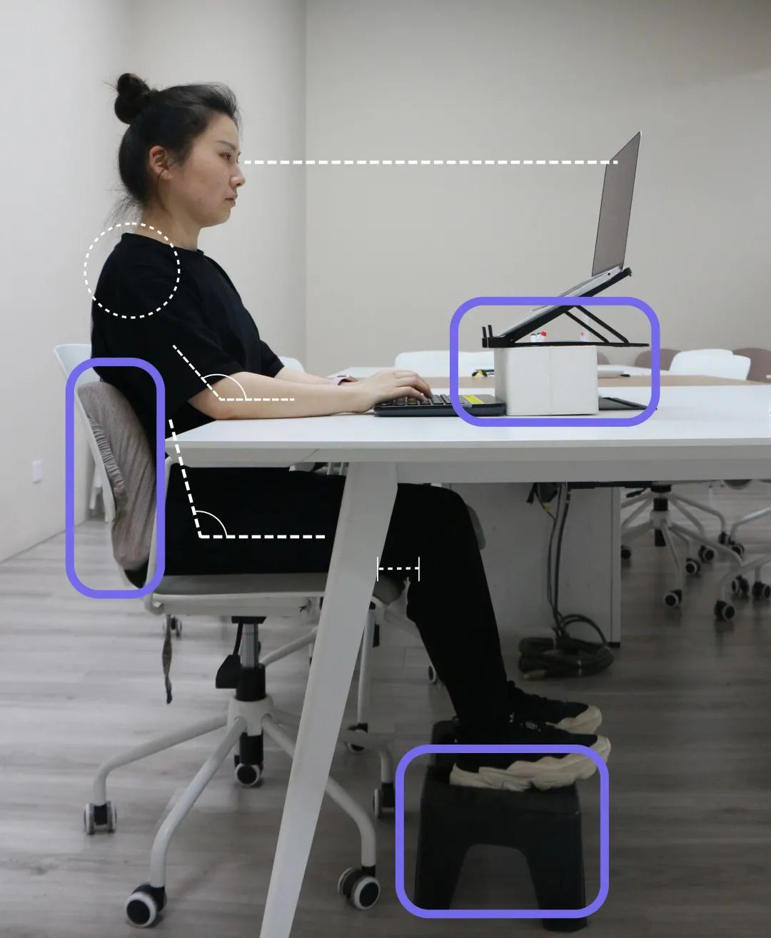 对于小个子女生来说,我们借用工具也能达到让自己比较舒适的办公坐姿。