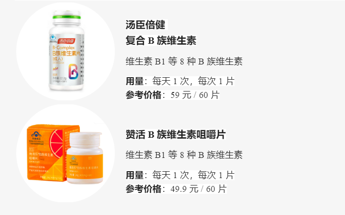 B 族维生素大多共同存在于食物之中,如果缺乏的话通常不会只缺某一种,最好是多种 B 族维生素共同补充,尤其要包含 B1、B2、B12。