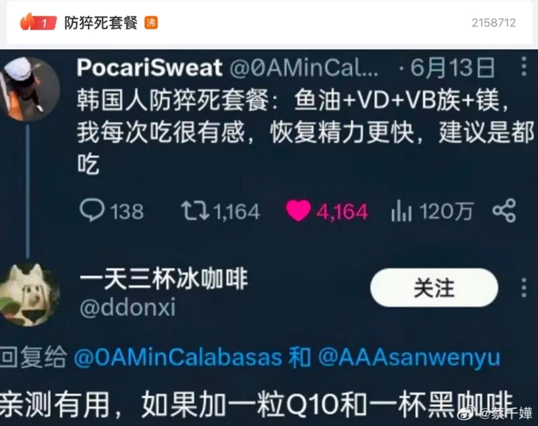前一阵子,韩国年轻人的「防猝死套餐」还上了热搜,里面就是一堆营养品组合拳。