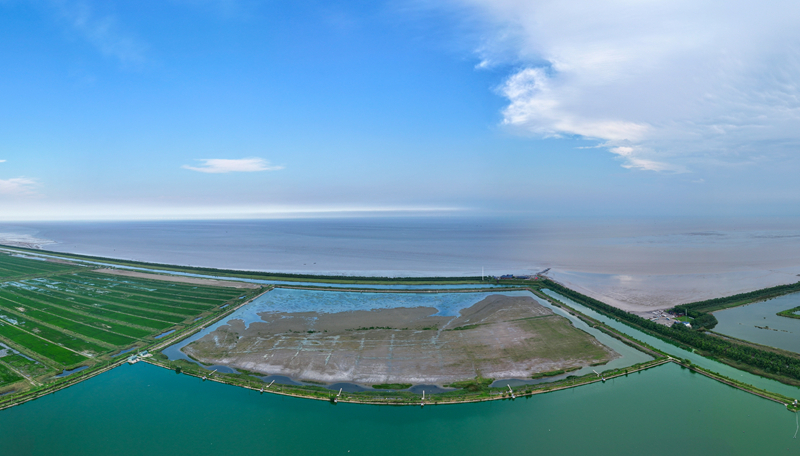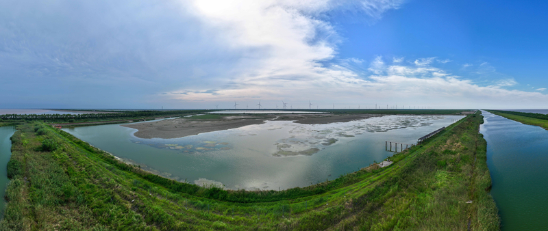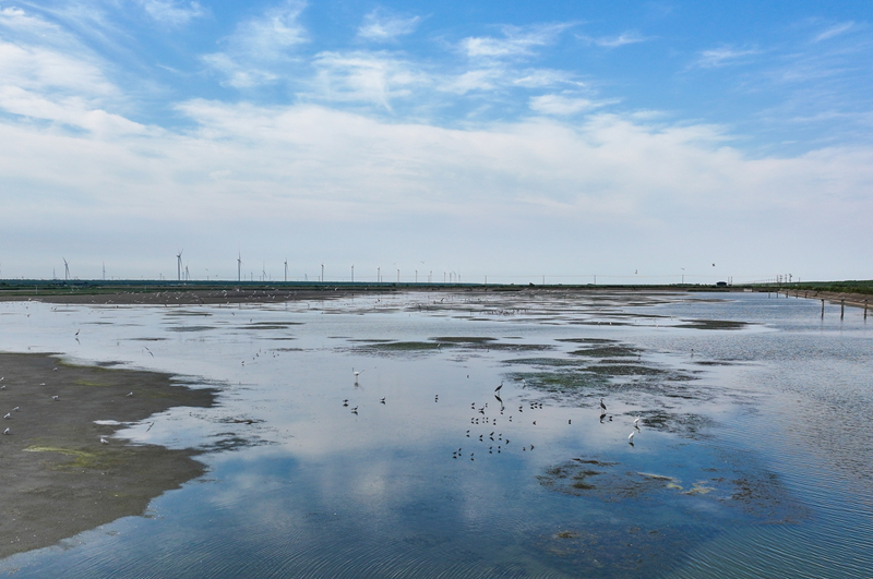 8月25日拍摄的东台条子泥湿地“720”高潮位栖息地(无人机照片)。