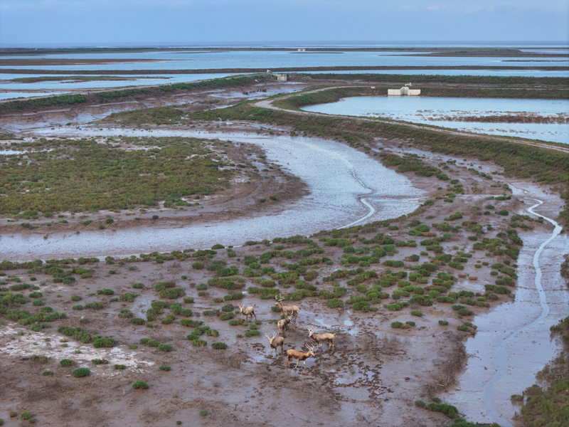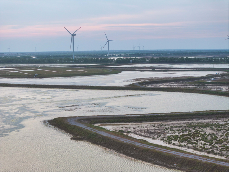 江苏省盐城市东台市条子泥湿地区域总面积129万亩。2019年,作为中国黄(渤)海候鸟栖息地(第一期)重要组成部分被列入世界遗产名录。近年来,条子泥湿地秉承“基于自然的解决方案”理念,开展了川水湾海岸带生态保护项目,并在东台海堤西侧专门辟出720亩鱼塘,打造了国内第一块固定高潮位栖息地。生态保护修复工程的实施使条子泥一些珍稀物种种群数量屡创新高,大批的水鸟、成群的麋鹿等野生动物在此“落户”,湿地修复初显成效。