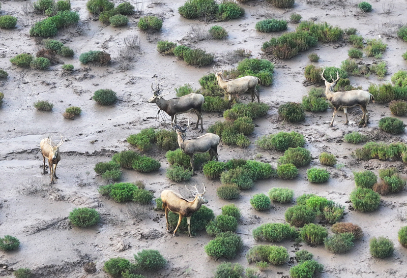 8月25日,野生麋鹿栖息在川水湾(无人机照片)。