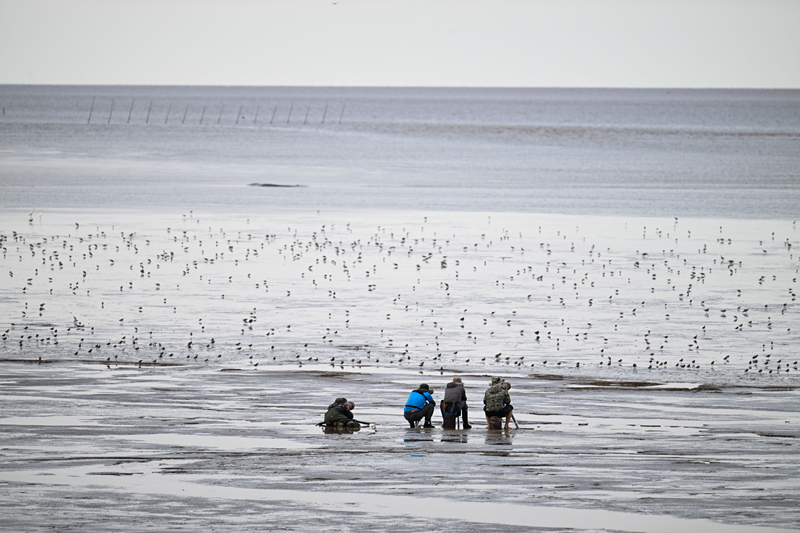 8月25日,摄影爱好者在东台条子泥湿地拍鸟。