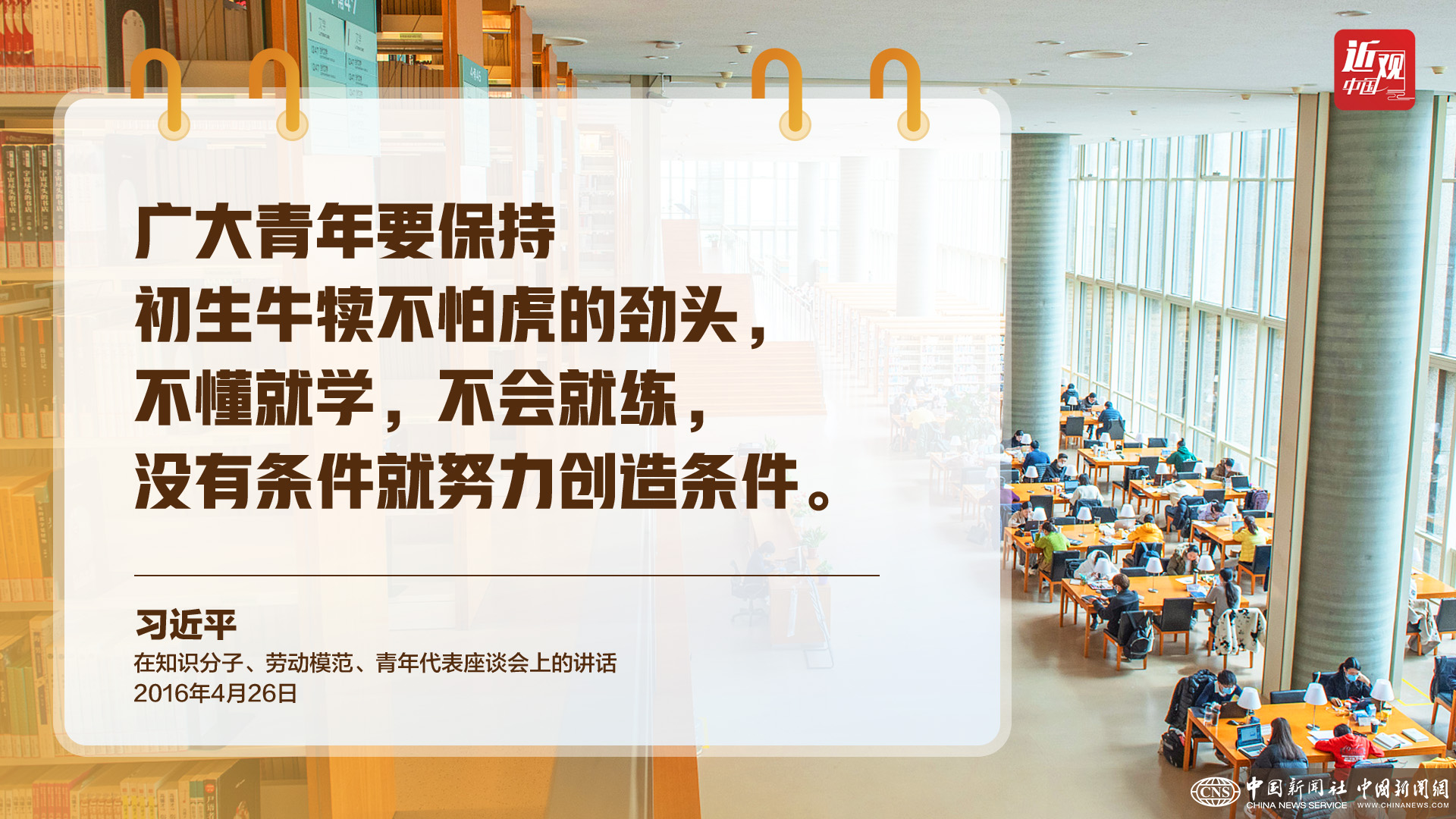 在讲话中,习近平表示,广大青年要保持初生牛犊不怕虎的劲头,不懂就学,不会就练,没有条件就努力创造条件。“志之所趋,无远弗届,穷山距海,不能限也。”对想做爱做的事要敢试敢为,努力从无到有、从小到大,把理想变为现实。要敢于做先锋,而不做过客、当看客,让创新成为青春远航的动力,让创业成为青春搏击的能量,让青春年华在为国家、为人民的奉献中焕发出绚丽光彩。